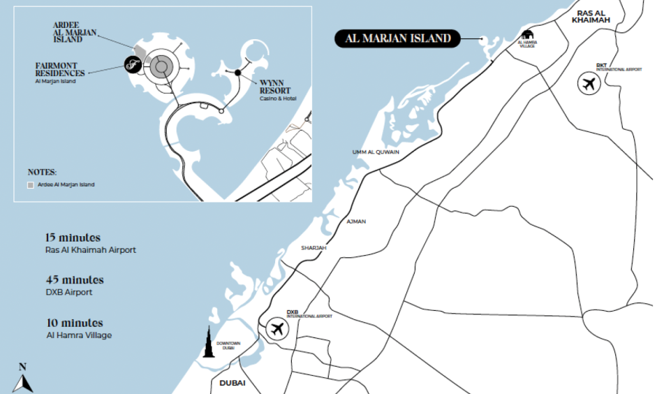 Situated in the heart of Ras Al Khaimah, Al Marjan Island is a striking man-made archipelago made up of four coral-shaped islands. Stretching across 7.8 kilometres of unspoiled coastline, it is home to high-end hotels, resorts, and soon, the Fairmont Residences Al Marjan Island—offering residents a lifestyle defined by serene beachfront living. The island is also set to welcome the UAE’s first casino at the highly anticipated Wynn Al Marjan Island resort, a landmark development in the country’s hospitality sector.